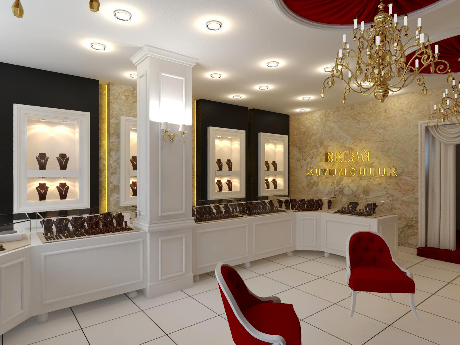 Adapazarı Pamukovada bulunan Ercan kuyumculuk, yakınlarında ki Özdemir Kuyumculuğun Artstyle Mimarlık tarafından yenilenmesine şahit olduktan sonra kendi mağazalarında da yenilemeye gitmek istemiş ve yenilemenin daha köklü olması adına yeni bir mekan alarak Artstyle Mimarlık ile iletişime geçmiştir. Artsyle Mimarlık olarak Ercan Kuyumculuk işletmecisi Halil beyle yapacağımız uygulama üzerine proje istişareleri yapılmı olup neticede Artstyle Mimarlık tarafından aşağıdaki tasarımların uygulanmasına karar verilmiştir.